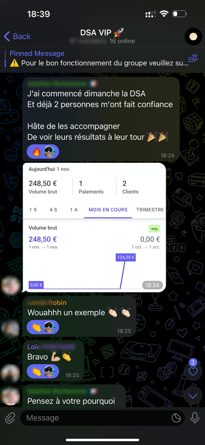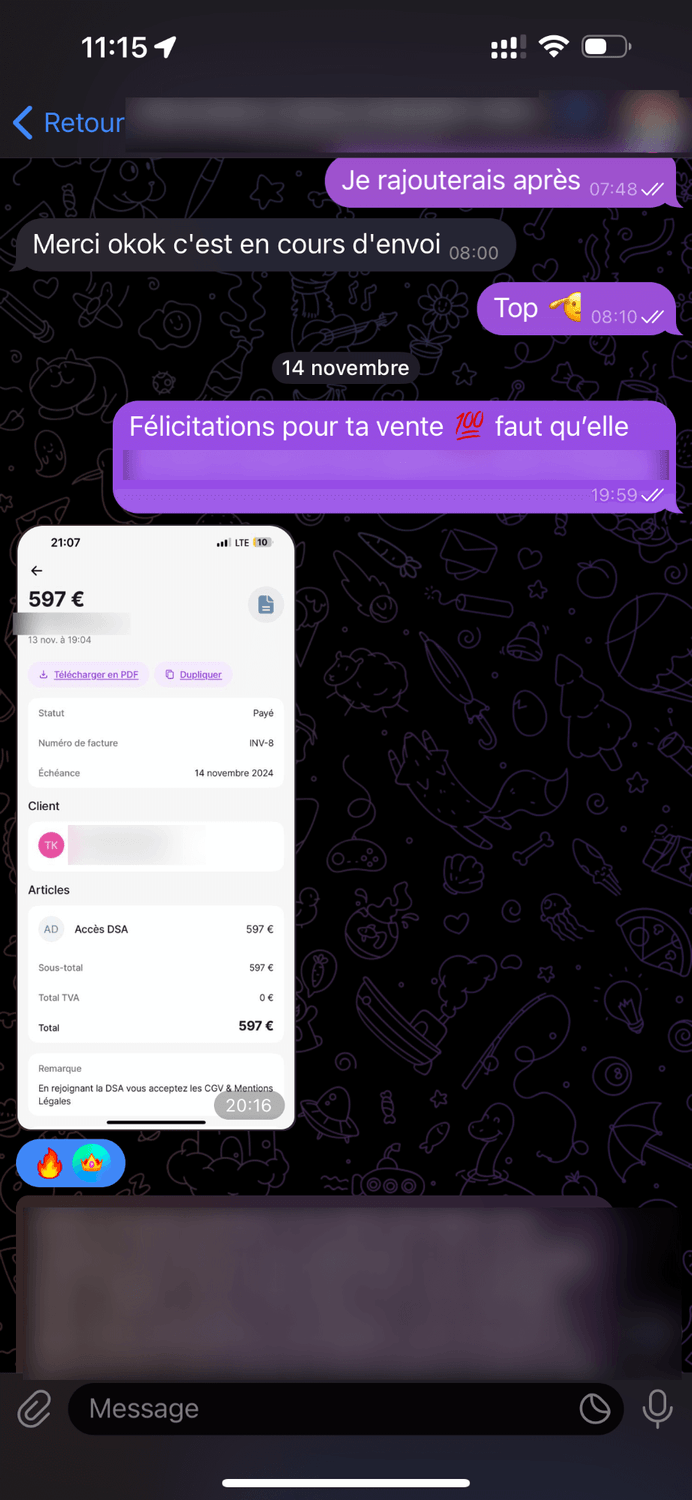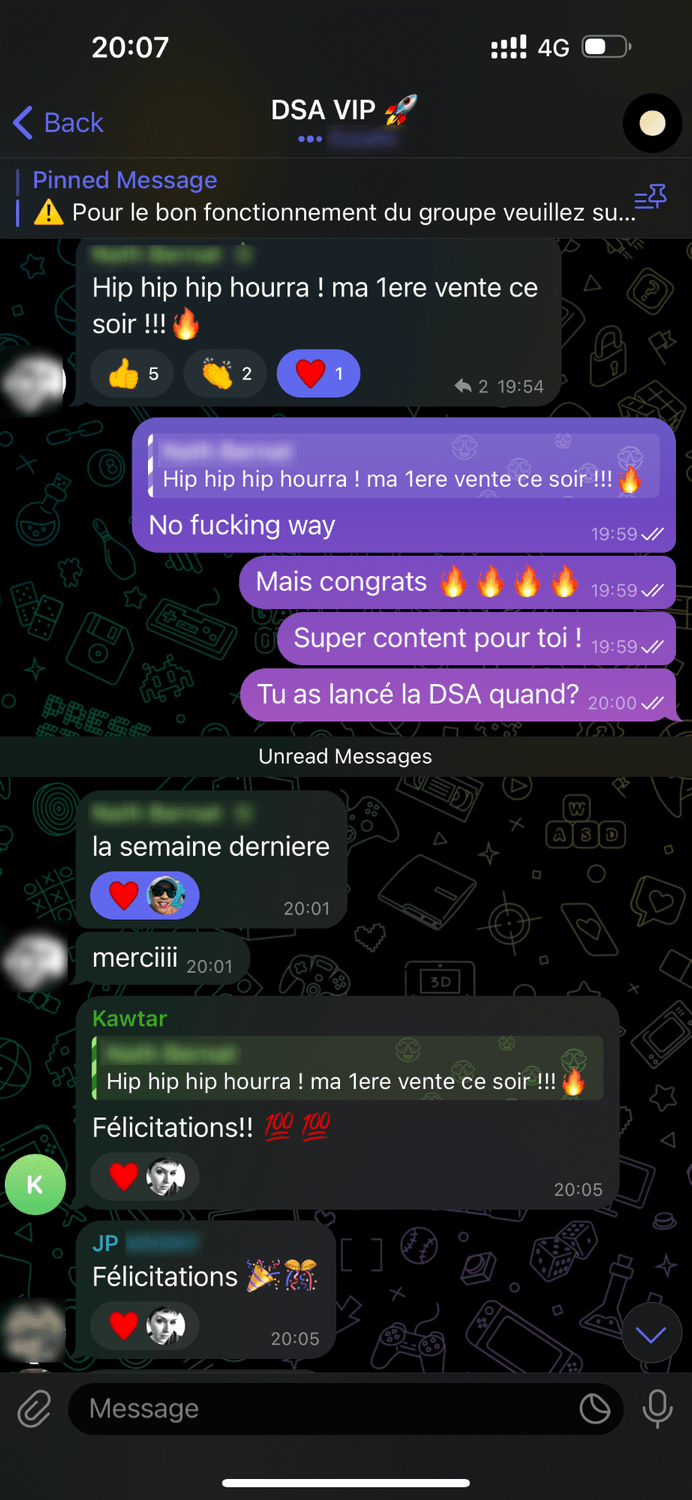 Et le plus énorme qui nous différencie de toutes les autres formations, c'est que vous avez accès à une validation directe de chaque étape de votre parcours de création de produit digital, choix de positionnement sur vos réseaux, copywriting, angle & hooks ... Le tout de A à Z avec Ayoub en personne.